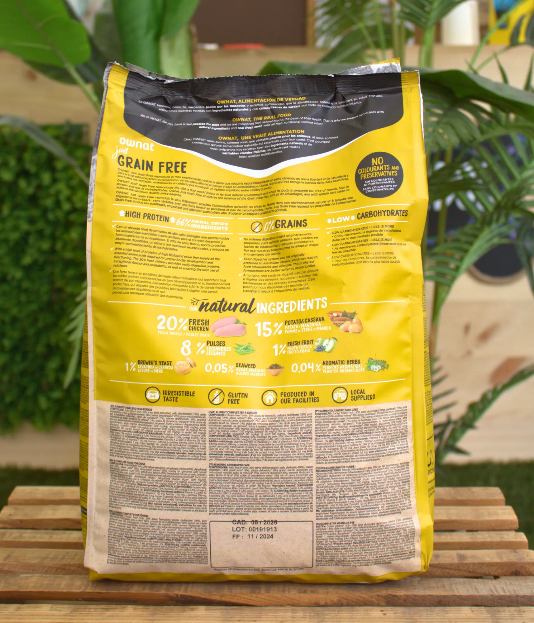 Ownat es una marca española comprometida con la alimentación real y natural para perros. El Pienso Ownat Just Grain Free Junior nace como parte de su gama “Just Grain Free”, desarrollada para ofrecer una alternativa de alta calidad nutricional sin cereales. Utilizando ingredientes frescos y de proximidad, Ownat ofrece un alimento que respeta los ritmos biológicos del crecimiento canino, garantizando calidad, seguridad alimentaria y un origen transparente. Producido en instalaciones propias, este pienso representa el equilibrio perfecto entre tradición, naturaleza y ciencia veterinaria.